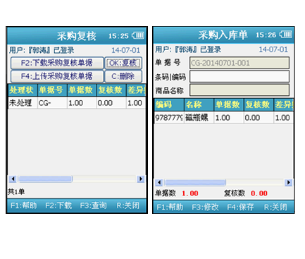 1、通過WIFI或者GPRS網(wǎng)絡,實時將單據(jù)上傳至軟件后臺,不需要再重復錄單。